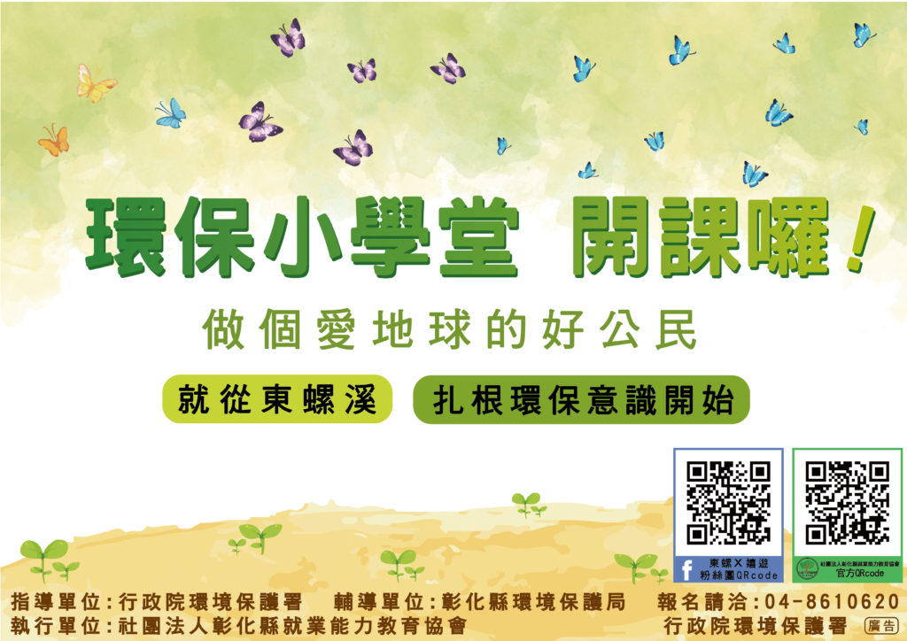 淺顯易懂、生動活潑的教學模式,帶入環保教育觀念,讓您感受到友善環境、愛地球的重要性,進而達到「東螺in生態,一起環保同樂行」。